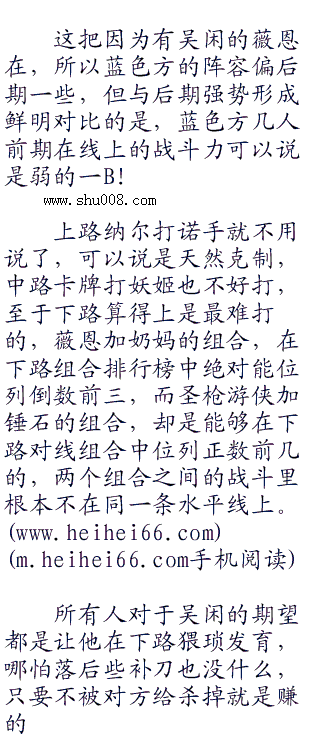 也许论单人的实力,吴闲确实不弱于Bang,或者比Bang还要高。但下路是两个人的游戏,就算吴闲的实力比Bang高也没用,因为还有一个辅助Wolf在呢!