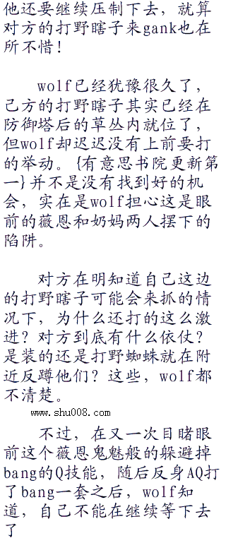 看起来,自己下路要加快进程了啊。吴闲在心中想到。虽然希望dopa接下来不要打的太崩,但吴闲也知道不能将希望都寄托在对方身上,在这种情况下还是靠自己来的更靠谱一些。