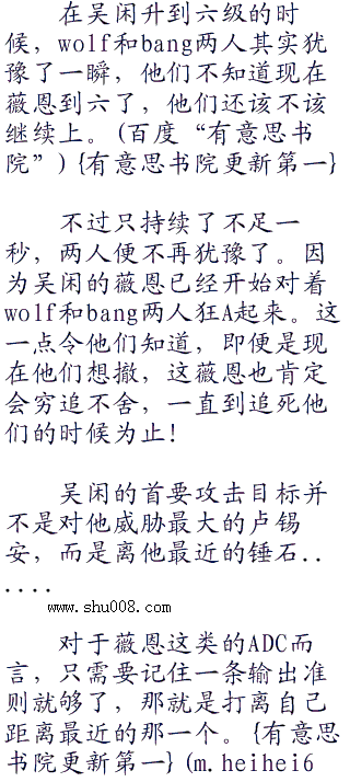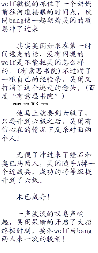 原来刚刚上线之后,bang和wolf两人虽然知道以现在这装备,他们的希望已经不大了,但是wolf还是在积极的寻找着机会。而不久之后,