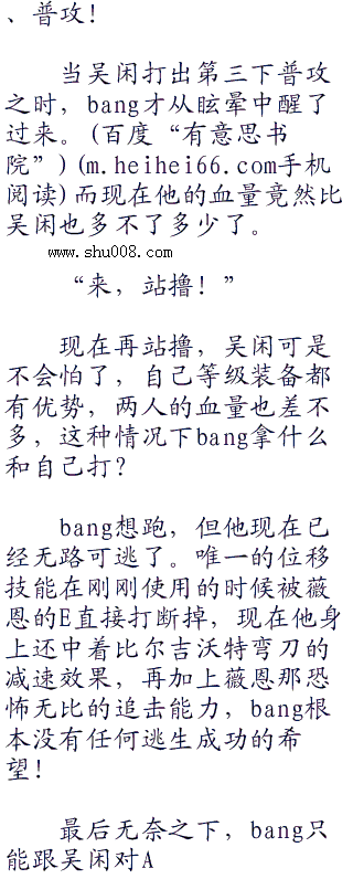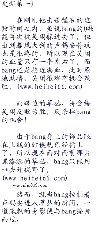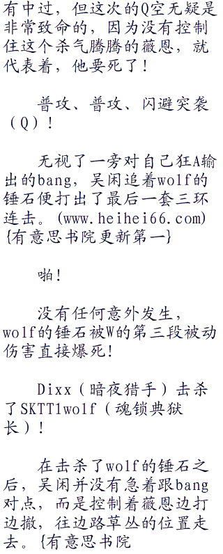 不只是wolf,bang也是怒的不行,两人心中现在只有一个念头,那就是一定要杀了这个嚣张的薇恩!