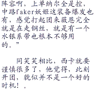 faker也不想这么打下去了,辅助奶妈的游走极大限制了faker的游走,有奶妈在一边狂奶,faker很难找到机会击杀敌人,现在他的发育已经陷入了停滞不前的状况。