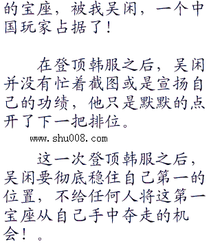 ‘妈的!终于要出一口恶气了!韩服就不说什么了,国服第一还老让一个韩国人占据着,玩的时候心里就别扭!现在吴哥也在他们韩服拿了第一,气死他们!’