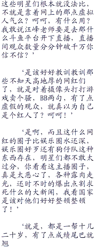‘汪峰老师说得好!现在网上的那些网红都是些什么啊,跟娱乐圈的