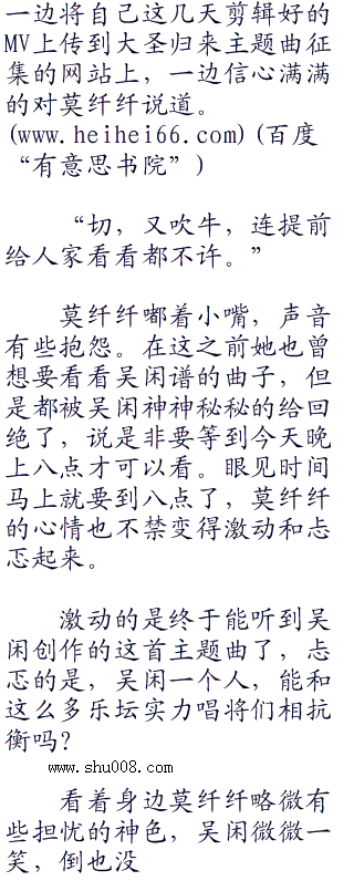 虽然时间还没到八点,但这时候一些唱功不错的歌手也已经开始将自己创作的主题曲开始投放到专门为这次大圣归来征曲活动设立的网站上了,他们知道凭自己的实力肯定是没法跟这些乐坛老前辈们比,要是也在八点发歌,肯定不会有什么好的反响,与其这样,还不如早些把歌曲放出来,这样能获得的关注也更多一些。