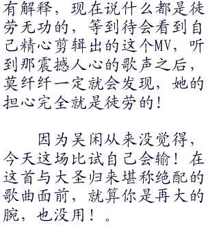 ‘是啊!听说汪峰老师今天要推出以大圣归来主题曲为核心内容的新专辑呢!我现在已经迫不及待想到听到汪峰老师的新歌了!’