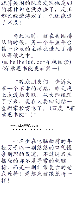 吴闲一边百无聊赖的等待着排到游戏当中,一边随口和直播间内的观众们闲聊着。