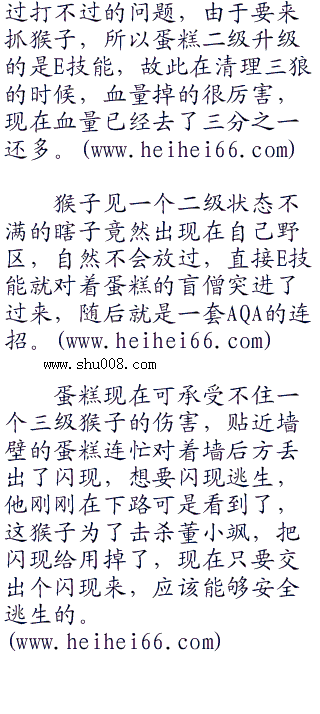 一边说着,蛋糕一边控制着盲僧绕到了三狼坑前,可是眼前的一幕却令他愣住了。hei.三狼正安稳无比的趴在刷新点的位置,但此处哪有猴子的踪影?
