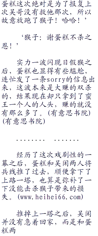 给蛋糕发了一个信号,示意蛋糕去杀猴子之后,吴闲便将注意力放在了蛮子的身上。