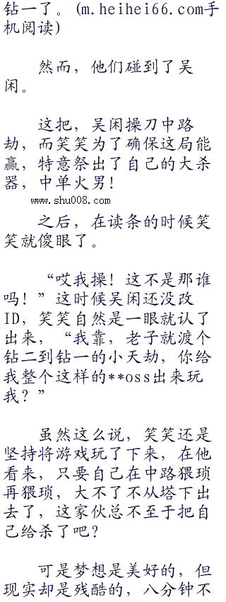 现在蛮子在线上看到吴闲之后简直是如避蛇蝎,线也不敢带了,赶紧滚回自家野区刷石头人去了。蛮子离开,吴闲倒也不追,默默的将兵线推到了对方二塔前,吴闲便给蛋糕发了一个信号,伙同蛋糕“六四零”两人再次来到了中路,对电棍的亚索发动了第二次gank!