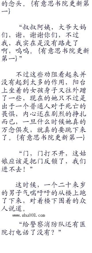 楼上坐在阳台边上要轻生的这个女孩叫林雪茹,应该和吴闲一样,也是刚刚大学毕业的样子,同吴闲一样,也是暂且租住在这里。