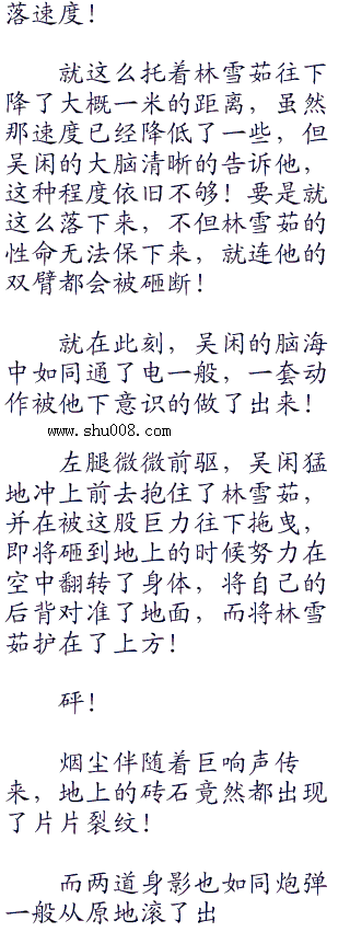 新闻曾经有报道,有只有两三岁,二三十斤的小孩子从高楼坠落,楼下试图接住孩子的成人都被砸的全身骨折,九十斤和二三十斤,看似只有三四倍的差距,但在高度的加成下,这一冲击力的差距将会被拉开到数十倍!一个不好,不但坠楼的林雪茹活不了,就连冒险去救她的吴闲都要被波及重伤!