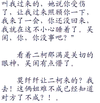 医院中,莫纤纤一脸焦急的看着吴闲,两只手想要放到吴闲的身上,但又害怕触碰到吴闲的伤口令他疼痛,只好尴尬的悬在空中。