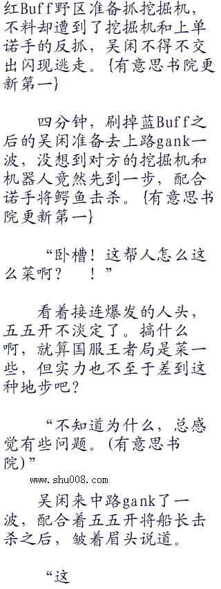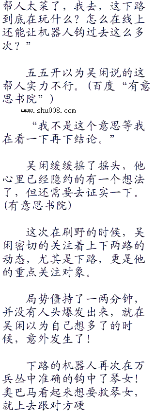 二分三十秒,吴闲刚刚刷完红buff和一组F4,下路又传来了琴女被击杀的提示,看样子是又被机器人给抓过去了。