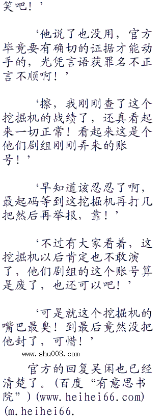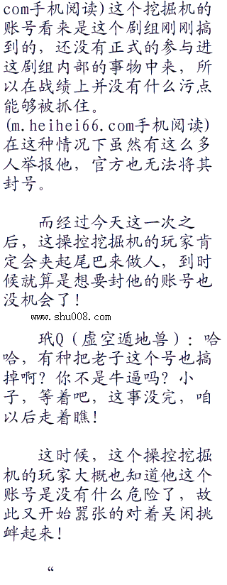 群情激奋的水友观众们又纷纷返回到举报网站,开始向工作人员开始查询这挖掘机到底为什么没有被封号的原因来。