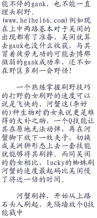 到现在为止,露cky算是完全看不懂对面这个打野豹女的行踪了。hei.刚刚所有人包括他在内都觉得这个豹女在抢完蓝之后应该会回自家野区拿红buff。但对方却偏偏没这么做而是在所有人都想不到的情况下去上路gank了一波,并且还真的成功把剑姬给杀了!
