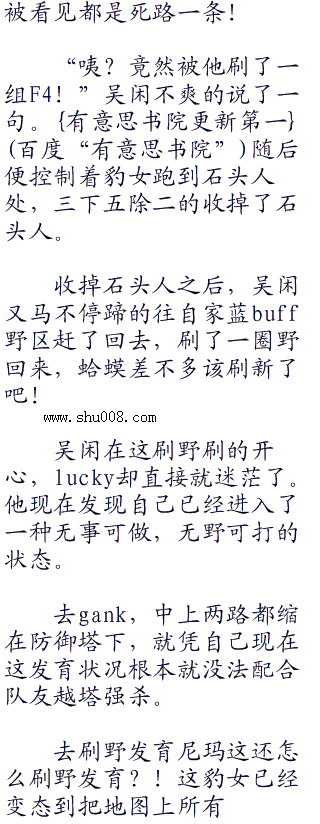 “我去,对面的蓝应该是豹女拿的,露cky你自己小心吧,这货有蓝了自己野区的野怪肯定不够刷的,你别让他抓死了!”