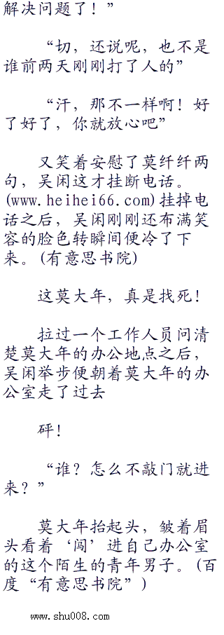 莫纤纤的声音有些担忧,她怕吴闲气不过去揍莫大年一顿,那样这事可真就下不来台了。
