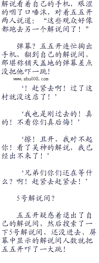 就这样,开始陆续有观众们抱着这样的想法来到了吴闲的解说间,再然后,他们就再也出不去了!