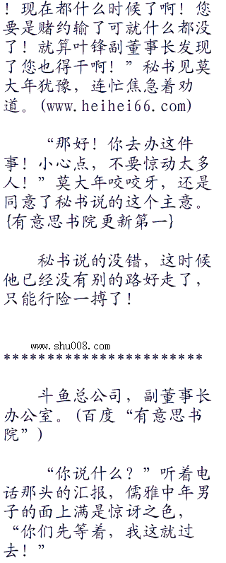 莫大年近乎以一种癫狂的态度抻着秘书的衣领,疯狂的咆哮着。<a href="hei." target="_blank">hei.</a>
