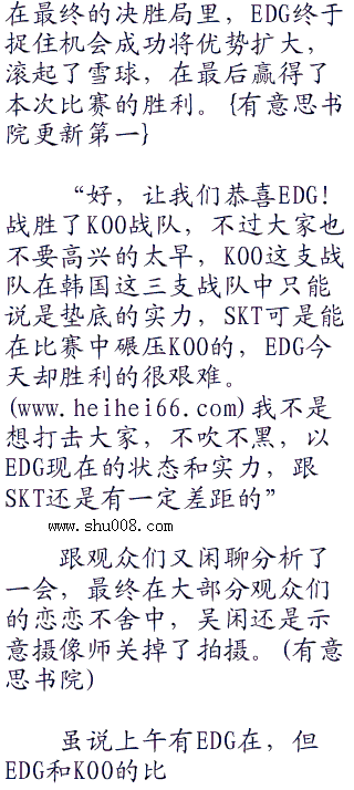 “这局如果不出意外的话,EDG要输了。”吴闲感慨的说道,虽然团战还未结束,但吴闲已经将结局猜个**不离十了。