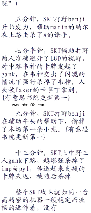 吃过午饭,养精蓄锐片刻之后,吴闲的解说间便准时开播,准备开始转播LGD与SKT之间的比赛。首发