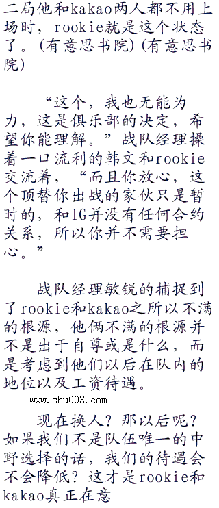 和烦躁的姿态三人相比,Kakao和rookie两人显得很平静,此刻两人正在用韩语小声的交流着。