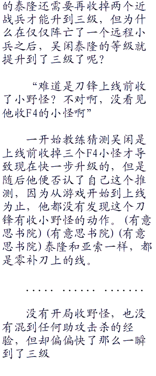 nagne虽然明知道自己待会有可能会在线上小劣一会,但他并不着急。他现在还能趁着双方都是二级的时候在补一会兵,两级的刀锋对他根本就没什么威胁,就算要撤,那也是等到待会三级的时候。