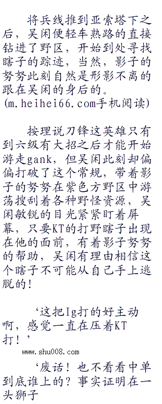 此时ssuay的船长正处在上路线中央的位置,此刻见男刀锋和努努两人抄了他的后方气势汹汹的朝他赶了过来,ssuay也不敢硬着头皮往防御塔下冲,只能顺势往河道拐去,想要从河道处逃走。<a href="hei." target="_blank">hei.</a>