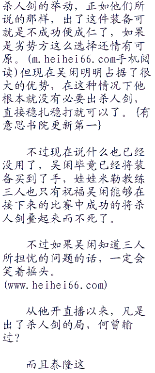 “杀人剑,这个怎么说呢”教练整理了一下措辞,斟酌着说道:“这装备,能打出优势还是蛮厉害的,不过要是一个失误可就惨了。”