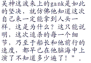 ssuay已经有些慌乱了,如果按照这么下去,说不定在他逃到防御塔下之前,这个男刀真的有可能追上自己。如果他现在有六级,只需要丢出一个大招,就能很轻易的阻止男刀锋的突进,但他没有,所以ssuay只能玩命的往塔下跑,并祈祷吴闲不会追上他。