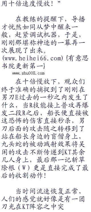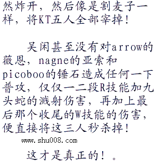 KT五人互相加油鼓劲,不过他们没想到的是,吴闲根本就没打算给他们把游戏往后拖的机会。<a href="hei." target="_blank">hei.</a>