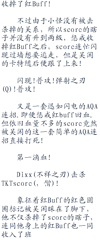 到了一分五十秒,就当姿态犹称着想要回线上的时候,score的,僧和ssumday的剑姬竟然出现在了红buff附近!这局score的瞎子竟然是红开!