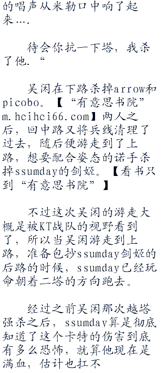 吴闲此刻的伤害无疑是爆炸级别的,再加上ez大招所提供的伤害,吴闲的大招仅仅转了一秒的时间,arrow的奥巴马还没答落地,就直接被秒掉!picobo。w w w co m的锤石虽然还剩余一些血量,但依旧没有生还的希望,吴闲甚至都没有刷新技能