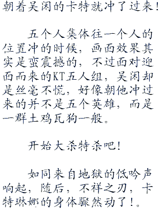 一套瞬秒掉nange的亚索和score的瞎子之后,吴闲直接控制着卡特冲到两座门牙塔之前,同时控制着手下的卡特发出了猖狂至极的笑声!.