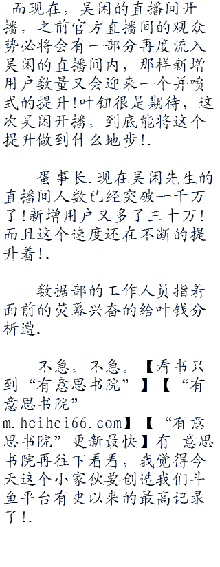 而此刻,除了喜欢看lol的观众们都在密切关注着接下来吴闲和ssumday之间的sol。比赛,斗鱼平台的许多高层人员,也在关注着吴闲直播间开播之后的倩况!