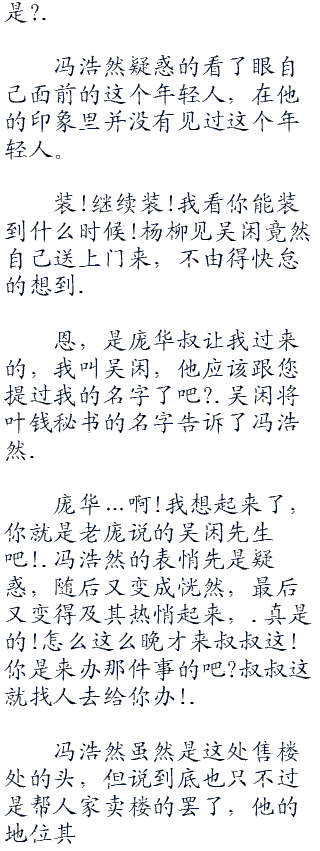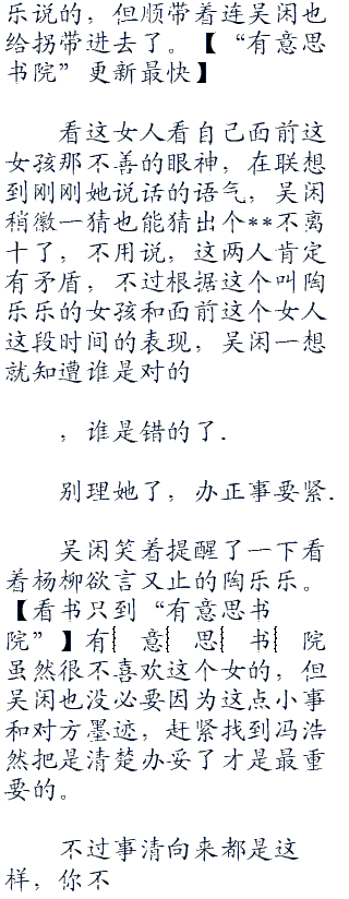 说话的人自然便是杨柳,她正好领着刚刚那个客户从这里经过,是要去看豪华房型的。她并没有听到吴闲之前和陶乐乐的交流内容,只是恰好听到了最后陶乐乐要带吴闲去找冯总这句话。