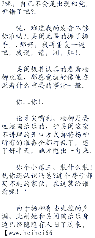 吴闲转过头看了一眼这说话的女子,二十七八岁的年纪,长得倒也不错,不过那薄薄的双唇和尖尖的下巴却给人一种刻薄的感觉。