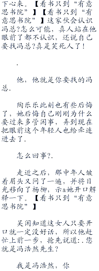 去找冯总?就他?杨柳不屑的看了吴闲一眼,她自认为自己的眼力不会出现问题,就单单看穿着,杨柳就能判断出这家伙肯定不是什么富家子弟,也就是普通的升斗小市民。