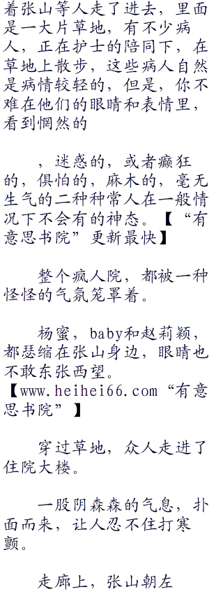 “嘿,我们现在是要去精神病院,怕不怕?;长山回头对坐在后排的三位女神笑道。