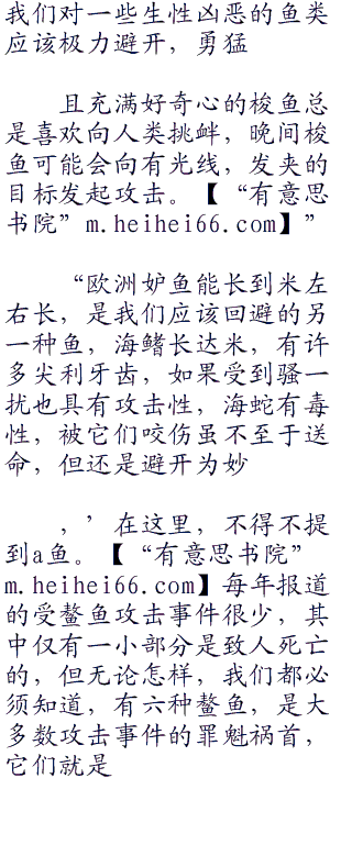 ,’说起有毒的鱼类呢,我再多说几句,许多珊瑚附近的鱼类是有毒的,有些鱼全年有毒,有些仅在一年中的某一时节含有毒性。毒性遍及鱼体全身,但肝脏,肠道和卵,毒性最强。鱼类