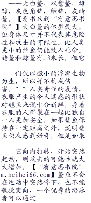 “总而言之呢,在大海上,不要轻视鱼类。有的鱼类接触起来相当危险,比如,许多魔鬼鱼尾巴上有毒性触须,有些鱼类身上携带电流。