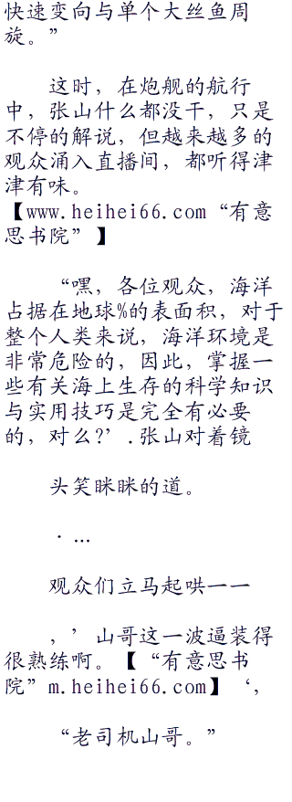 张山站在甲板上,不停的对着镜头诉说道。“各位观众,在茫茫大海中长时间的远洋航行,是极端枯燥的一件事。所以呢,在这段时间,我会给大家讲解一些关于海上求生的知识。”