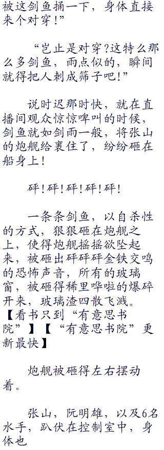 “草!是剑鱼!;长山忍不住咒骂了一声。