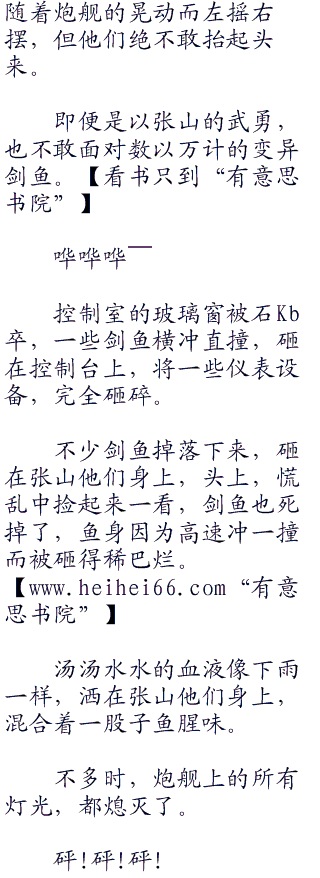 张山看得分明,正前方,密密麻麻的鱼类,从海面上跃起,正如箭一般疯狂朝扑向炮舰!