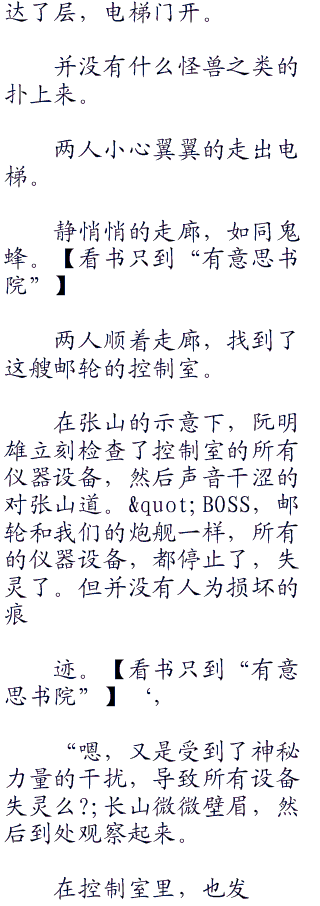 "boss,看来它是要下降到1层二到底是什么?会,会不会是邮轮上的人?’.阮明雄很是焦虑的道。