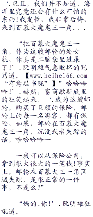 一具尸骸,所以一一跑吧!跑到邮轮最顶层,然后往下面跳,听天由命吧!”