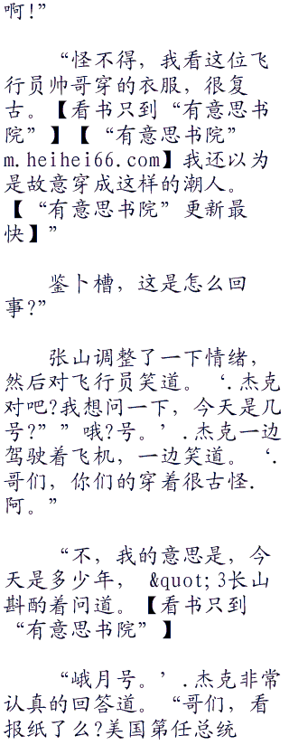 张山却是爬到了飞机副驾驶的位置,一瞬不瞬的盯着那名飞行员,颤声问道。‘.请问,你是?”