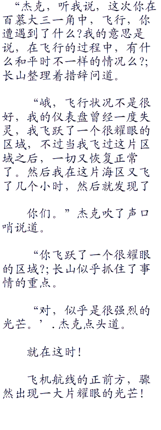 慕大魔鬼三一角区域内,的确每一天都在发生这些不可思议的事情。”