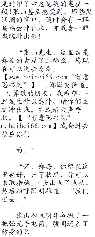 “张山先生,我们郑族的祖屋,就建筑在距离村落几公里外的一处高悬上面。它已经古老得不成样子了。’.郑海解释道。“你们确定要进去看看么?”