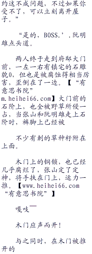 “你只熏要把我们领到古屋那里就行了,你不瀚要陪我们一起进去。另外,发生任何意外,我们自己承担责任。’.张山微笑道。